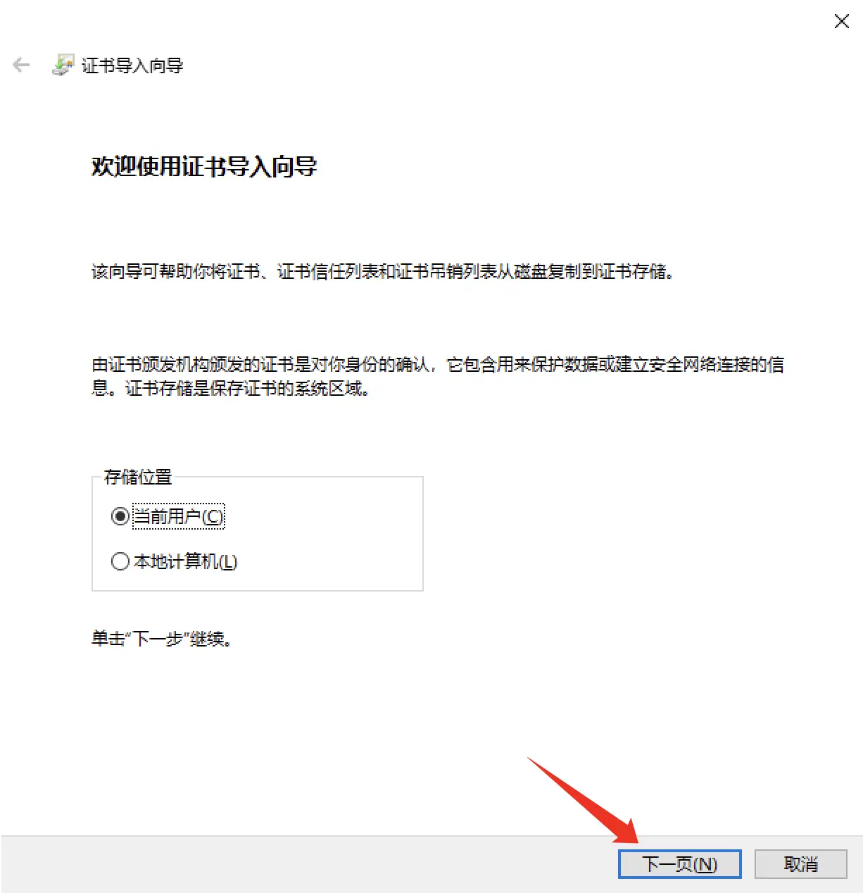 然后保持默认选择,一直点击【下一步】按钮,直到提示证书导入完成为止。