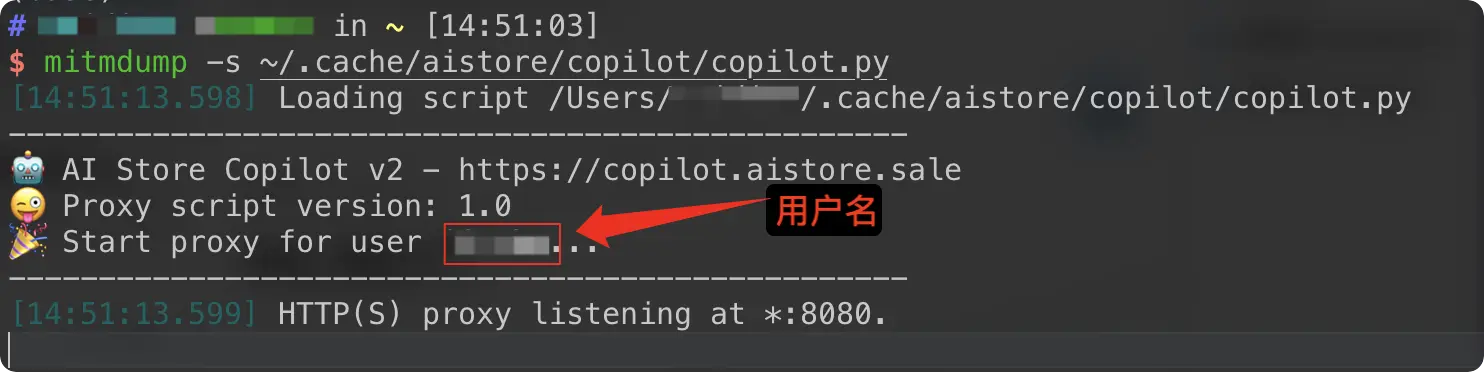 ps1mitmdump.exe -s ~\.cache\aistore\copilot\proxy.pyLinux/Mac 用户: